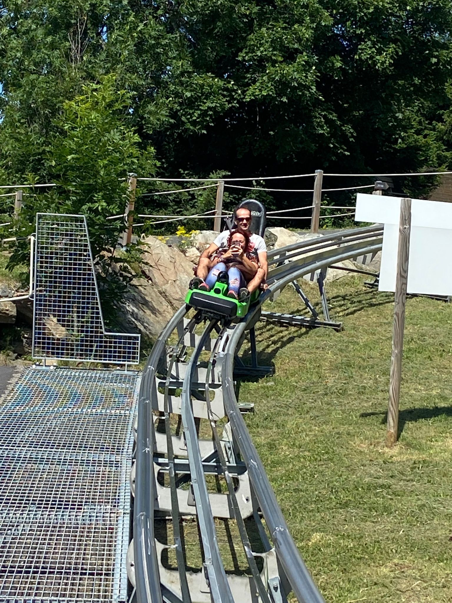 J'imaginais quelques chose de plus grand avec une descente très longue (qui traverse une forêt...) mais pas du tout, c'est assez court comme un manège sur une centaine de mètres, avec deux remontée/descentes, le tout dure environ 6 minutes. Cela reste assez plaisant à faire. À deux adultes avec trois enfants, on s'est alterné pour les prendre dans notre luge entre nos jambes. On a eu pas mal de chance en arrivant vers midi, on a pu profiter d'une file d'attente vide. On a fait en tout 6 tour de luge pour 29€. Bonne expérience :)