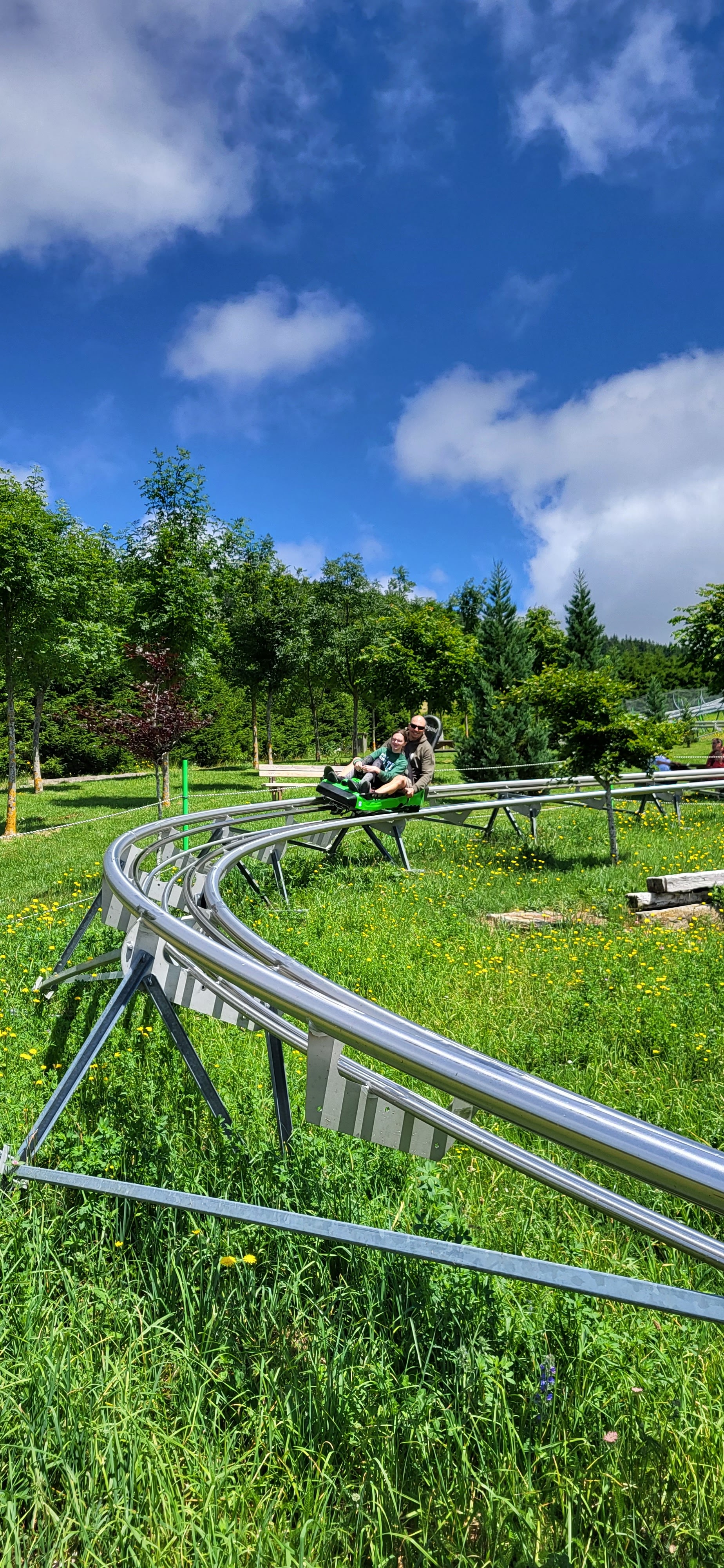 Chouette idée que ce parc de luge d'été. situé dans un site magnifique, bien entretenu et personnel sympa. Il y a des tables de pique-nique avec vu sur le circuit et un point restauration. Une activité fun en famille ou entre amis 👍😁