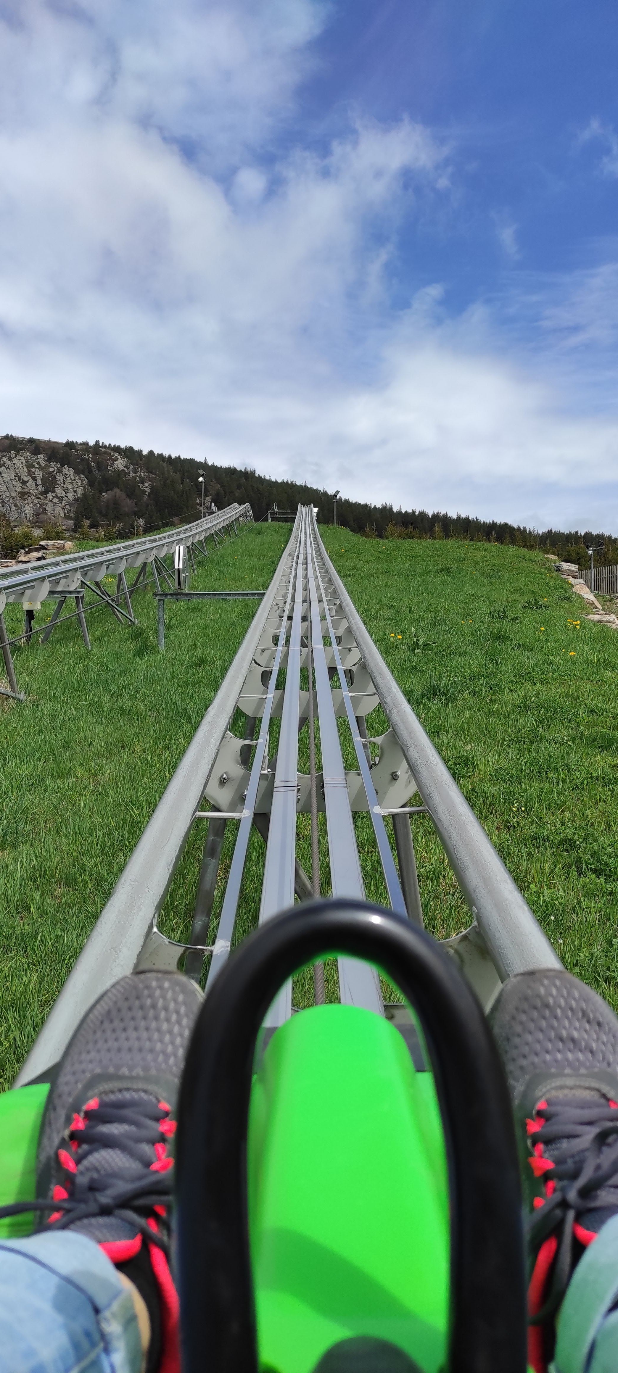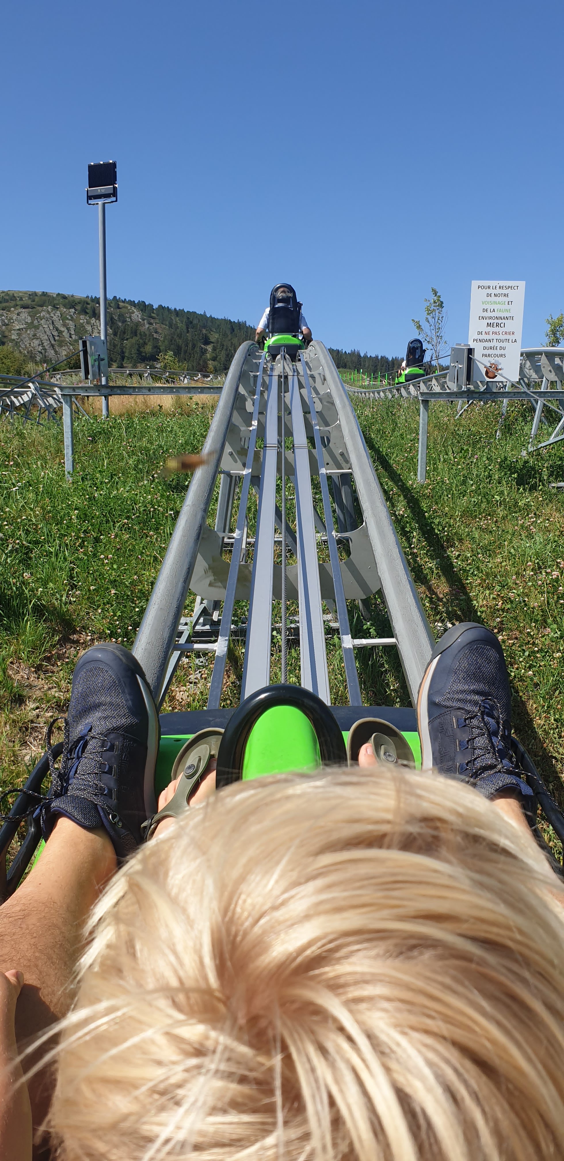 Vraiment sympa ce parcours la tête au soleil en face de la nature. Bonnes sensations si on ne freine pas trop. Vaut mieux être seul que deux dans la luge.