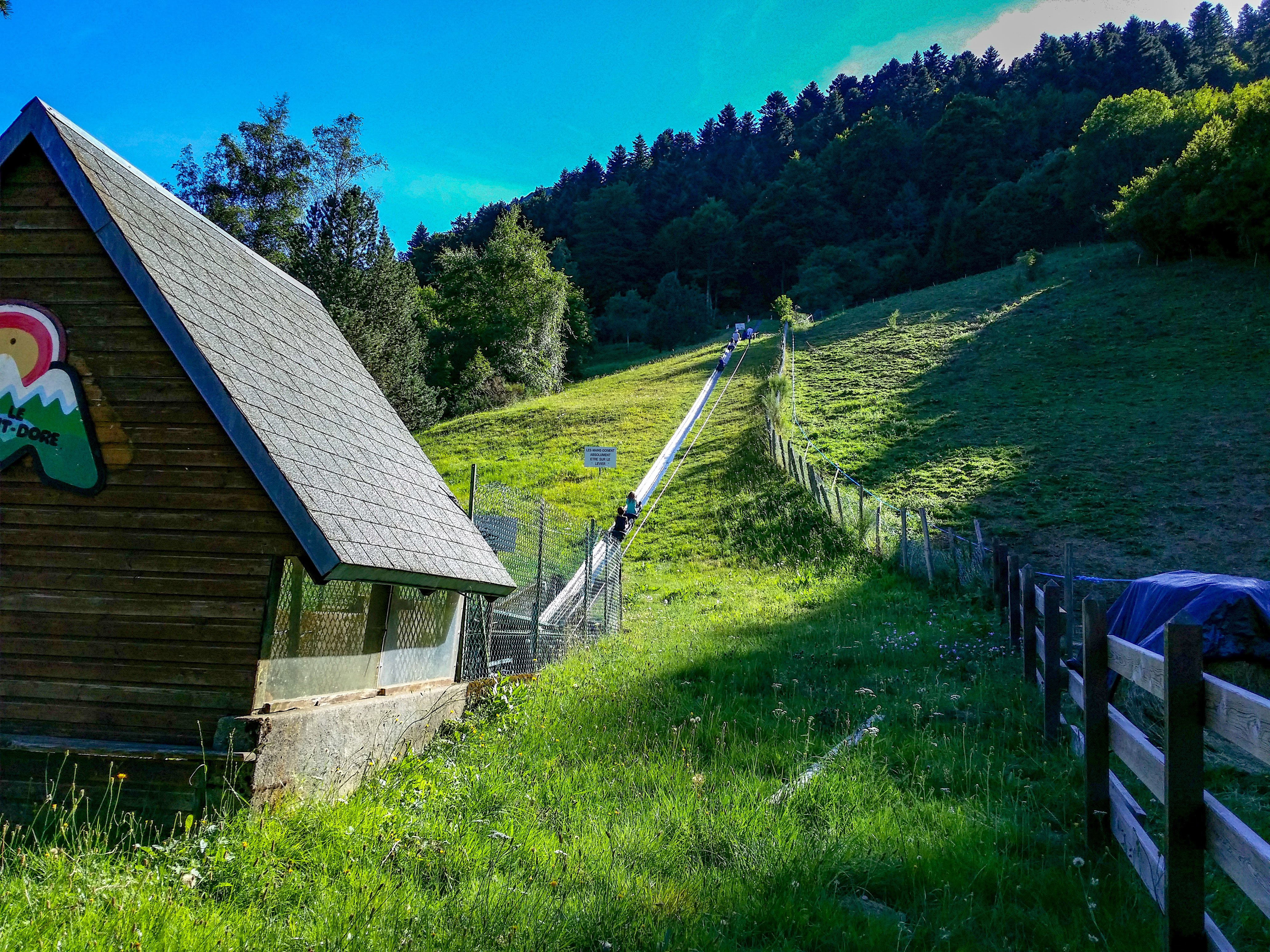 Petit circuit pour luge d’été à Mont-Dore sympa. Assez court mais qui fait le bonheur des enfants. 3 euros le ticket, nous avons eu de la chance car quasi pas d’attente mais en été ce n’est apparemment pas toujours le cas. N’hésitez pas à attendre un peu plus au départ si un petit est devant vous au risque d’être freiné dans la descente. Bonne descente !