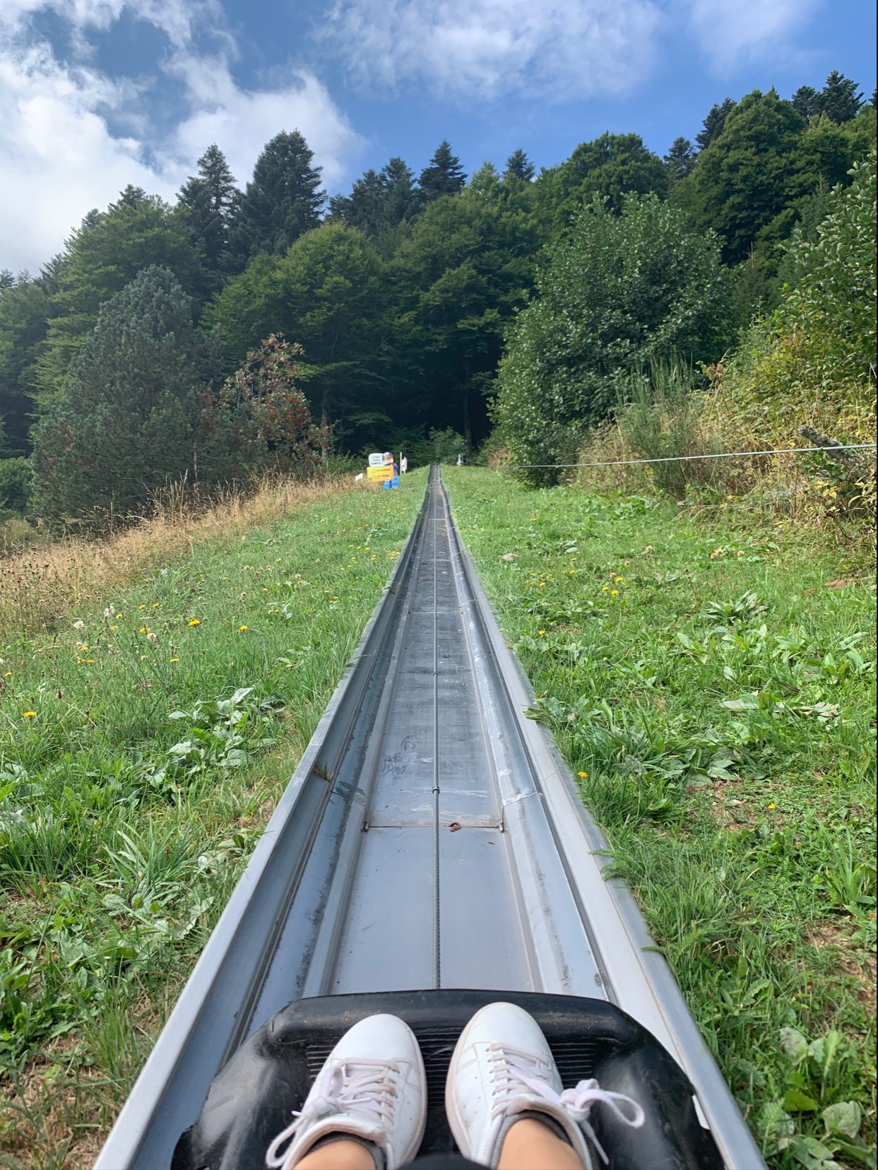 Coucou la piste de luge d'été c'est trop trop cool aller vite en faire on c'est trop bien amusez