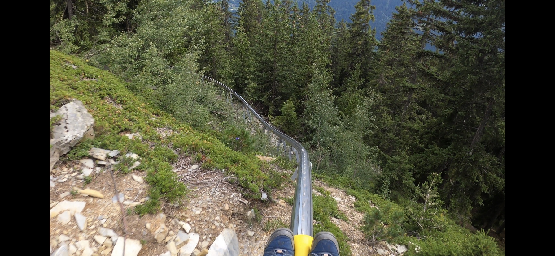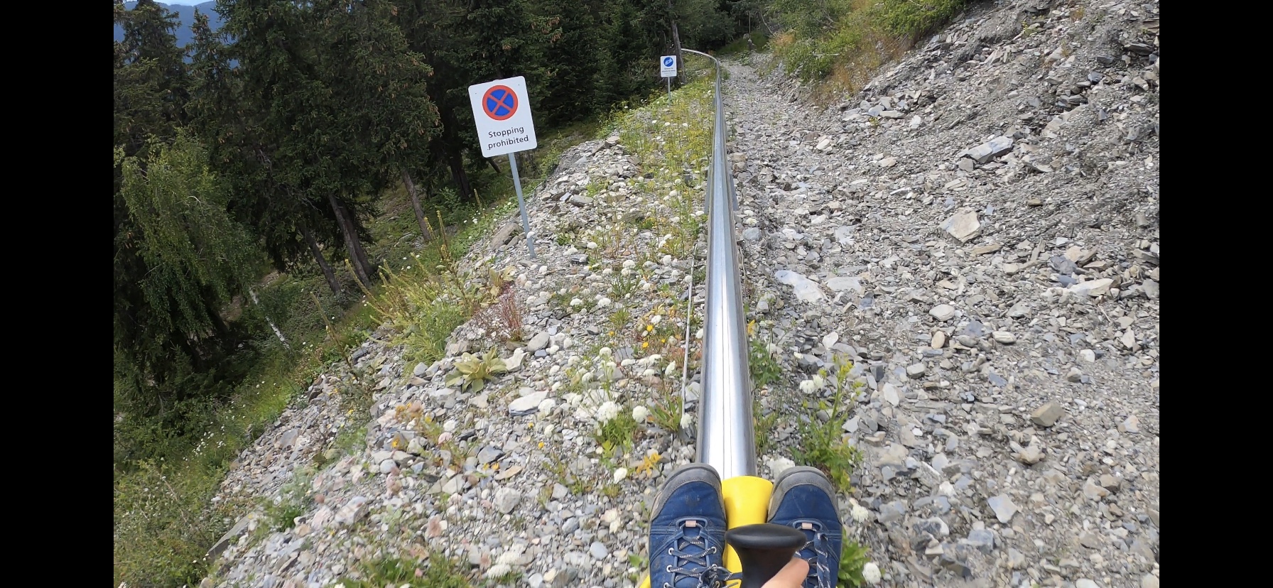 Très bonne idée que cette luge qui dévale les pentes, mais il faut avoir le cœur bien accroché ... dommage que le premier virage soit si serré :-(