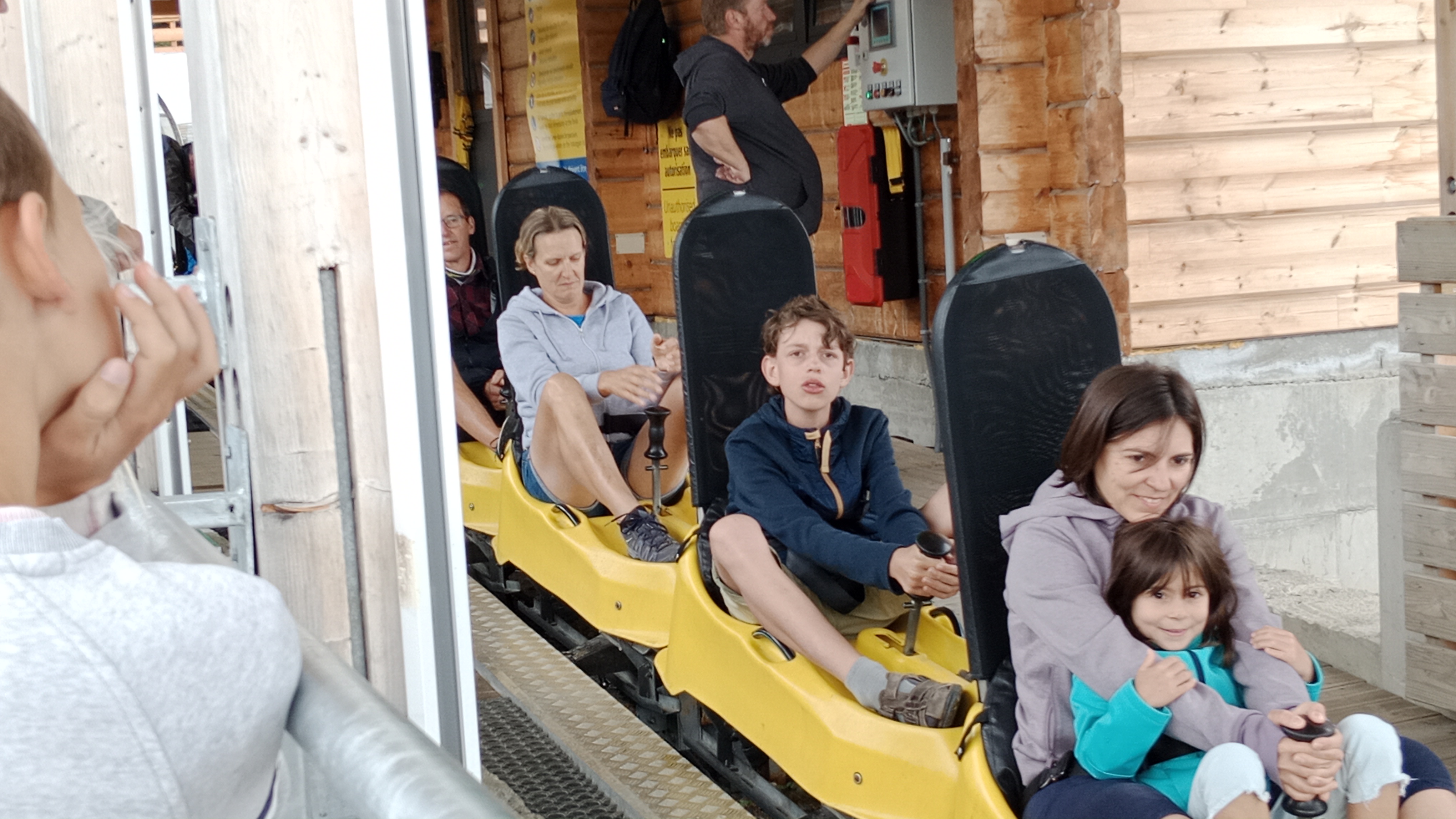 L'un des meilleurs jours de cet été !! (2 en fait, nous sommes revenus une semaine plus tard ;-)). Super balade pour presque tous les âges. Jusqu'à 8 ans je pense, les enfants montent avec une autre personne, à partir de là, ils peuvent y aller seuls. Un tour coûte 8 €, mais vous pouvez acheter 10 billets pour 60 € et les partager avec votre groupe (ou n'importe qui si vous cherchez un moyen de le rendre moins cher). Très maniable, poussez le levier vers l'avant vous allez plus vite, tirez-le vers l'arrière vous cassez. Quelques passages raides, mais vous avez le contrôle total, vous allez donc aussi vite ou aussi lentement que vous le souhaitez / avec lequel vous êtes à l'aise. À la fin de la descente, vous restez dans la luge et remontez la colline, ce qui est également très amusant car très raide. Notre 5 ans a adoré et n'arrête pas de parler de la fusée jaune !! 😂